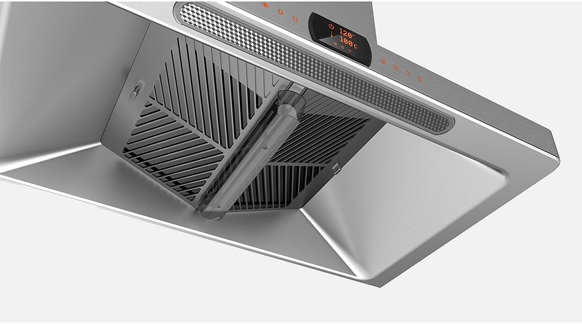 本案采用一體化的設計理念,針對燃氣灶與油煙機的產品特色,在同一平臺框架下進行了系統化設計。創新的平板化一體式設計,既保證吸煙效率,也增強了產品家族感。獨特的圓角造型元素,有效保障了用戶的使用安全。