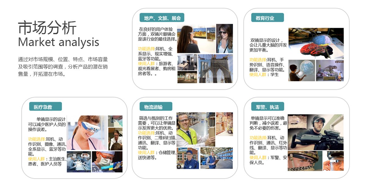 翊視皓瞳打造的專業領域智能眼鏡,創新性地將智能眼鏡區分為五大應用行業,并根據不同行業的需求點進行針對性設計,準確敲打產品的設計痛點,呈現出一系列兼具科技美感和功能性的智能穿戴產品。一體式設計,便捷的人機交互方式,為傳統行業帶來看得到的工作效率提升。