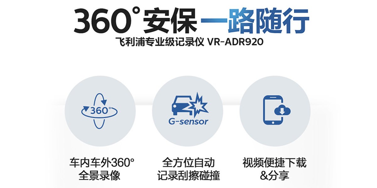 “飛利浦”ADR360 專業級行車記錄儀將產品造型與產品功能相結合,兼具了美感與簡約的環保理念。 以黑色作為產品主題色,搭配高品質的玫瑰色/銀色金屬環與太陽紋,前后兩個攝像頭環繞其中,強調產品360度記錄的功能性,為用戶帶來可靠性與呵護感。