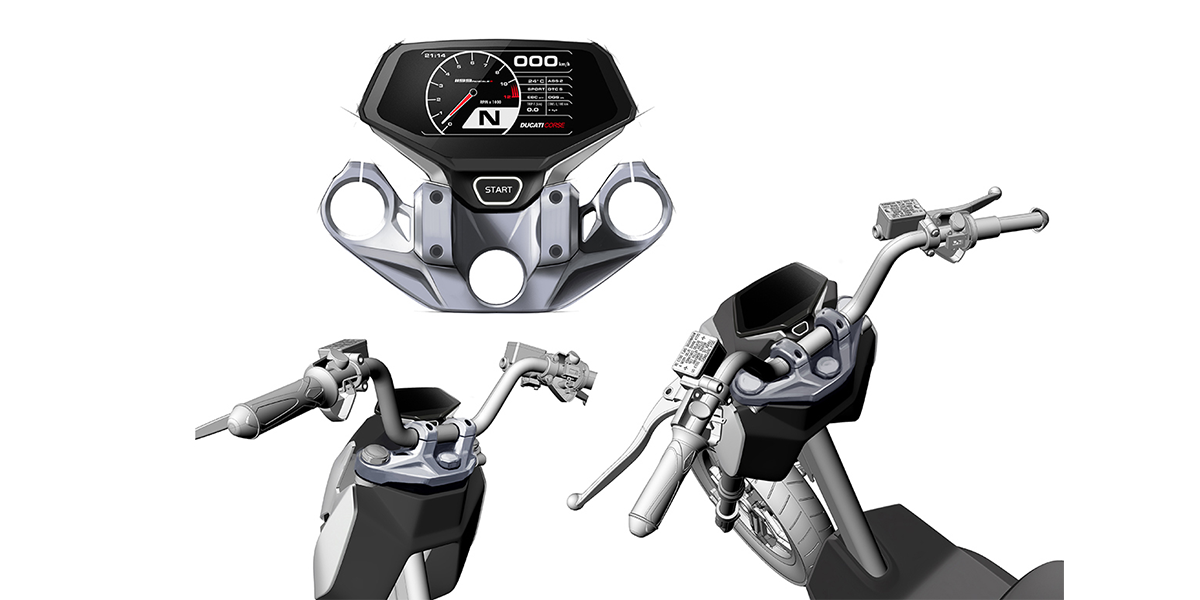 在概念設計方案的基礎之上,對其中的智酷極客方案進行了深入的分析和再設計。保留車身前臉的幾何形切割方案,對車座部位進行稍許修整,并保證面與面之間的每一個過渡都是有棱角的,從而使得車身更加鋒利并且充滿動感。在符合人機的基礎上將車尾稍稍凸起,呈現出快速和運動的節奏,從而使得這款電動車與 80 和 90 后目標人群的需求相符合。